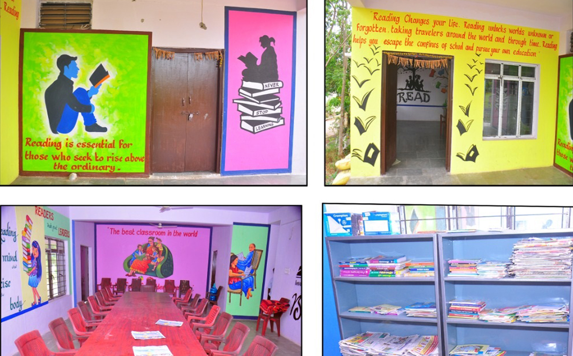 To extend the Library Services to the Clientele in Rural Areas the concept of Public Reading Room is evolved and as a part of it, eight Public Reading Rooms have opened in Yadadri Bhuvanagiri District and many more to open, The interest of Children are take care of with Murals and Wall Paintings.